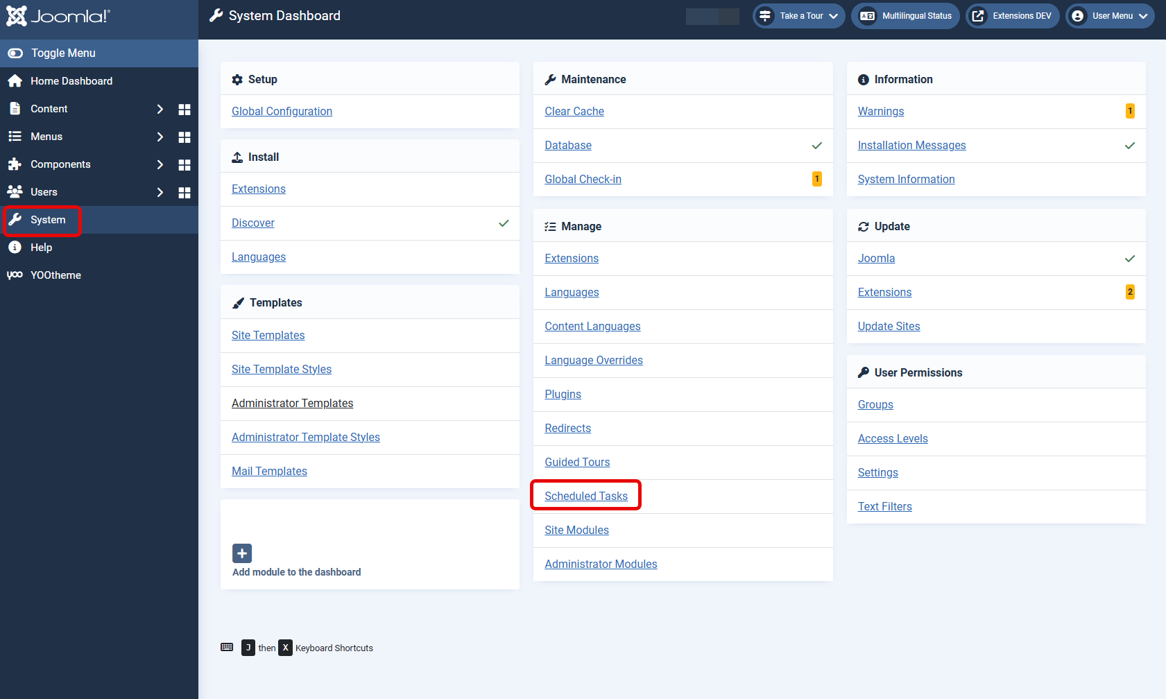 First we need to setup Scheduled Tasks in System > Scheduled Tasks