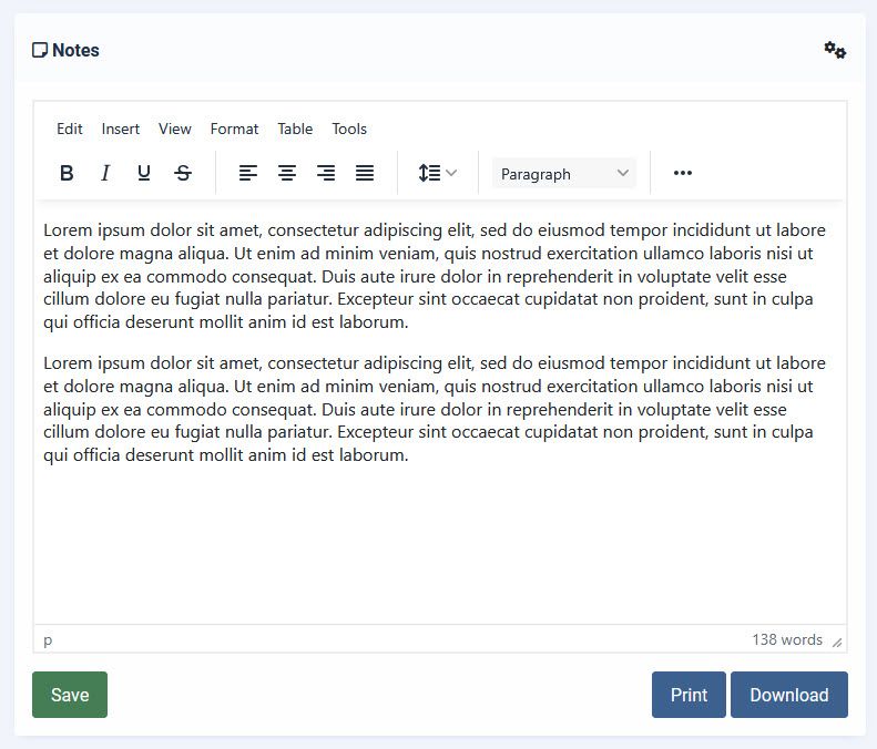 At the bottom of the notepad you find the print button to print the notes or download button to save the note as .txt-file.