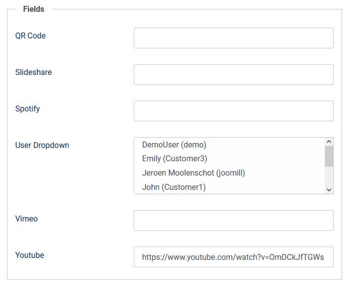 This plugin lets you create new fields for 'Vimeo videos' in any extension where Joomla custom fields are supported.