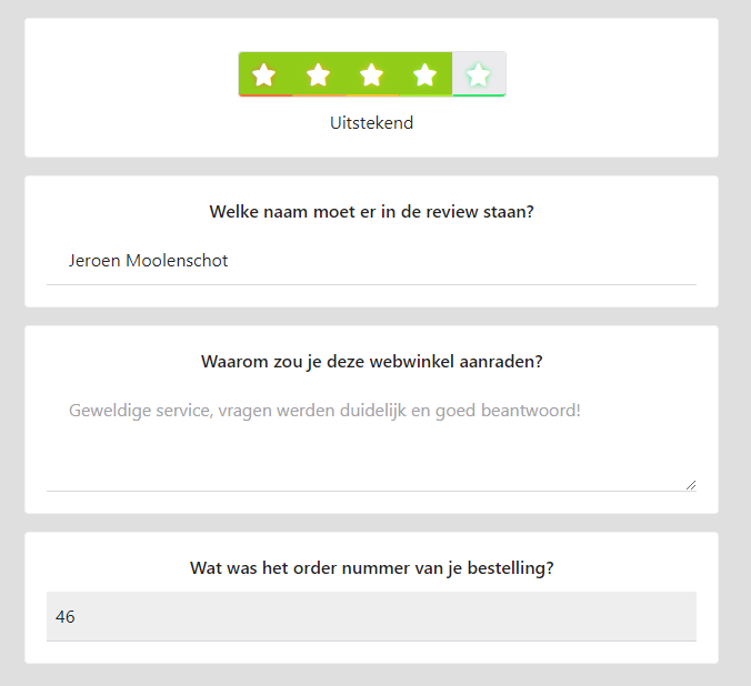 Eenmaal geactiveerd, kun je beginnen met het verzamelen van product reviews! Je klanten krijgen dan binnen hun reguliere reviewuitnodiging ook de kans om de bestelde producten te beoordelen.