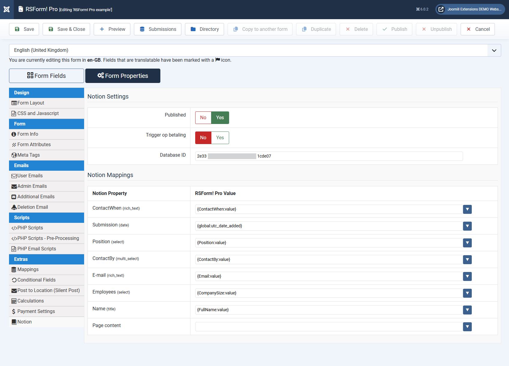 This plugin requires the latest version of RSForm! PRO and a Notion account (free or paid)