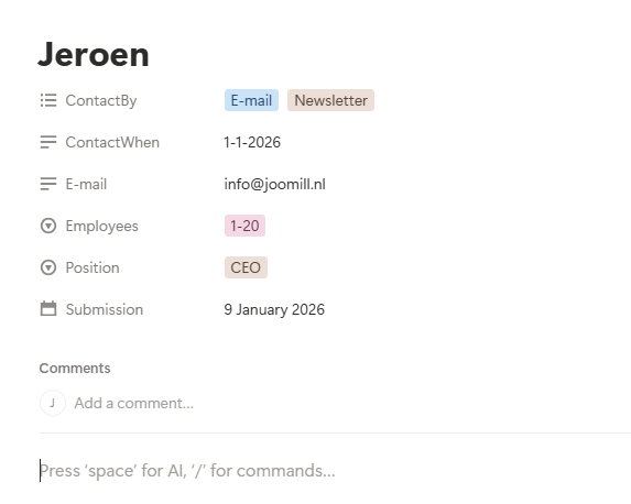 Simply use your form's placeholders (e.g., {Name:value}, {Email:value}, or {Subject:value}) to populate the corresponding properties in Notion, ensuring your workspace remains structured and your data is instantly usable.